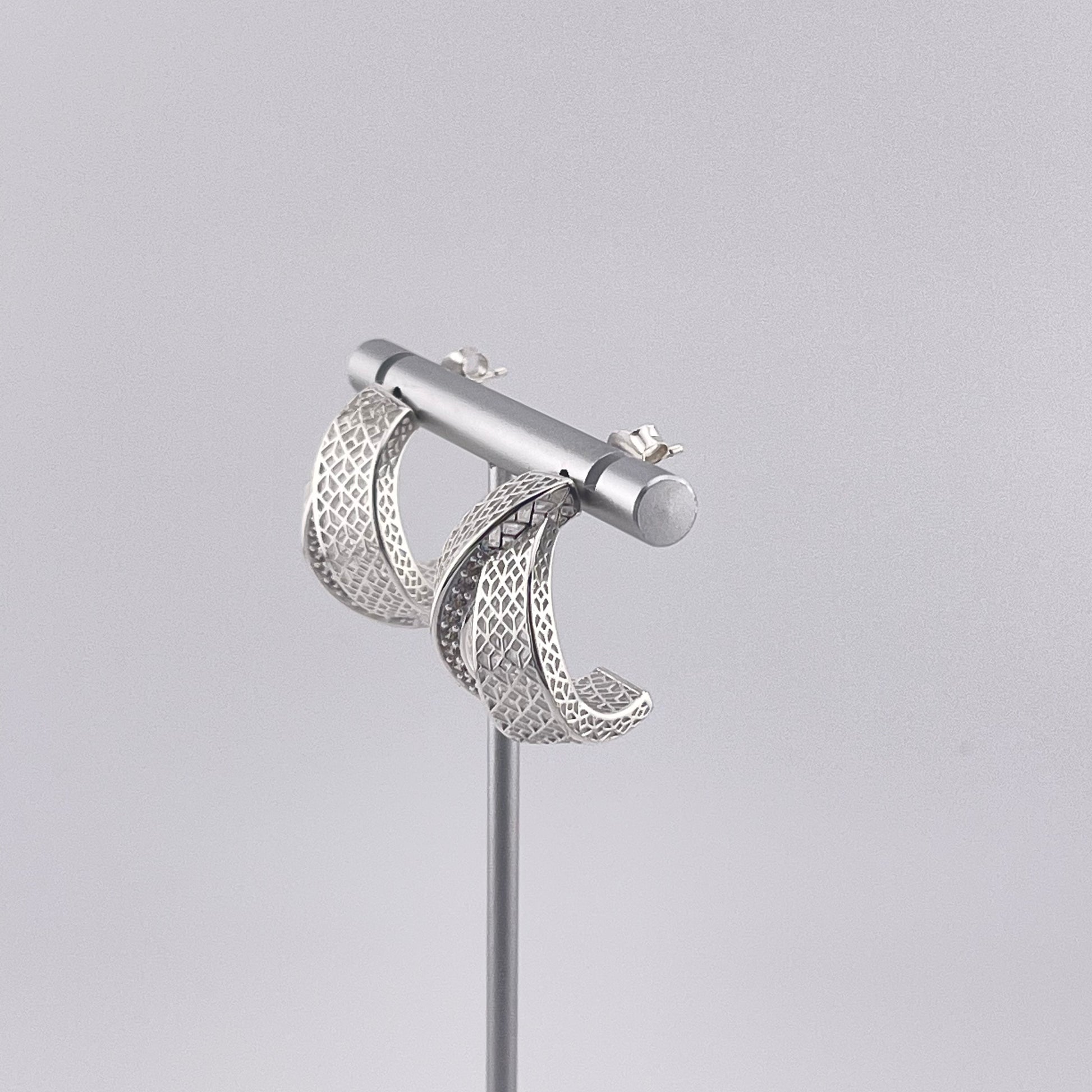Add a touch of elegance to your look with these 925 sterling silver statement drop earrings, designed with a unique sculptural loop silhouette. The intricate openwork texture reflects light beautifully, giving these earrings a luxurious sparkle that complements both casual and formal outfits.