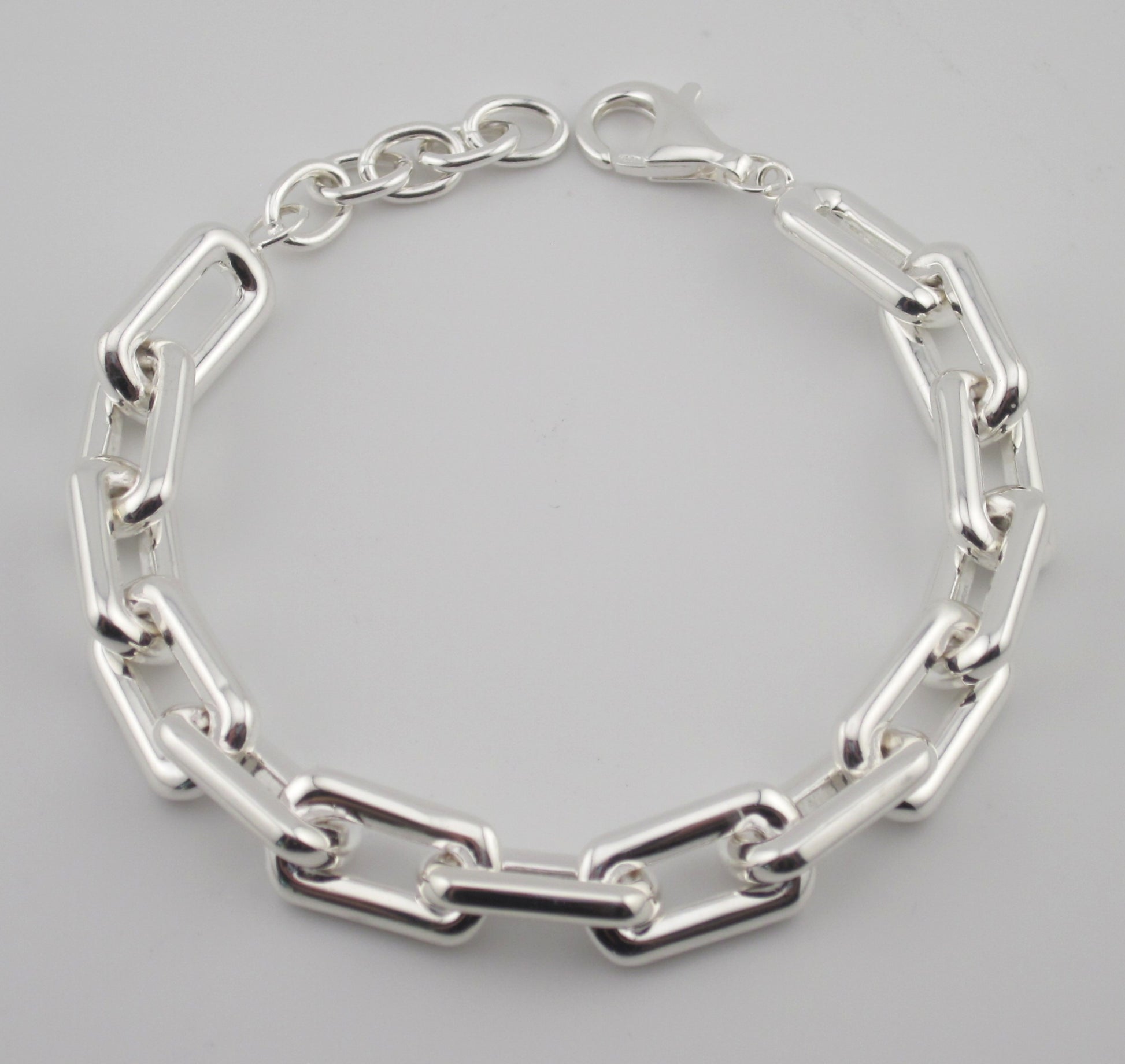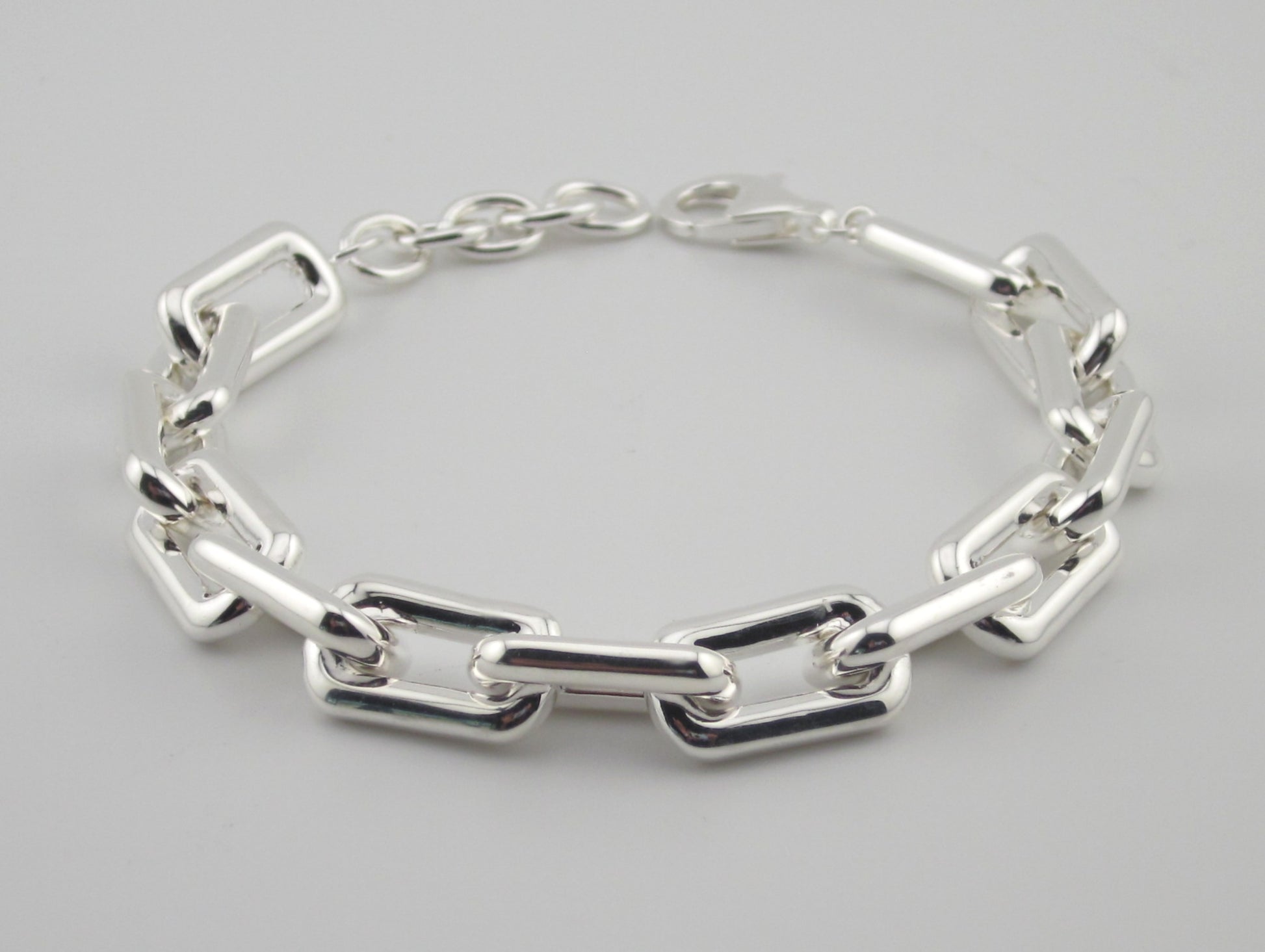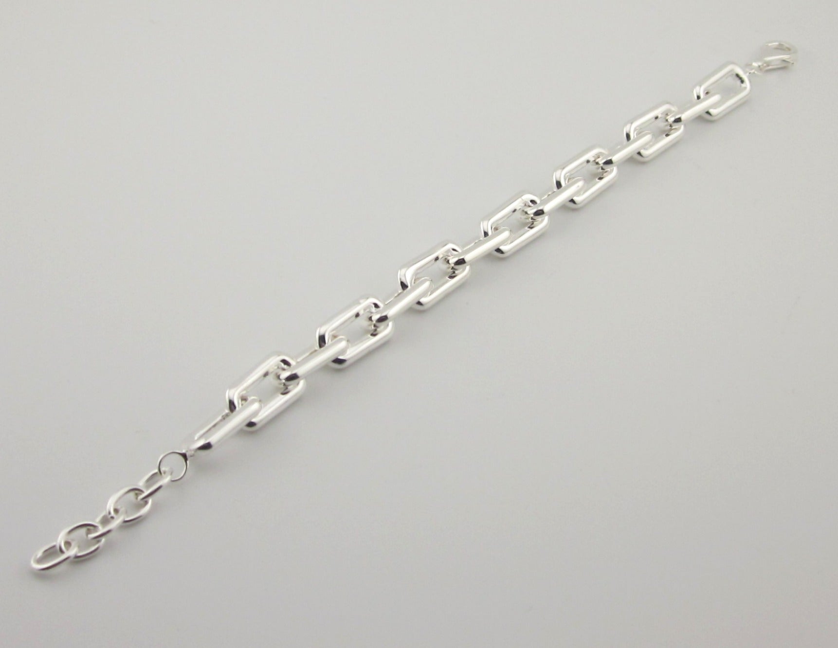 Chunky Sterling Silver Link Bracelet: Bold Rectangular Chain, Adjustable Length, Mirror High polished