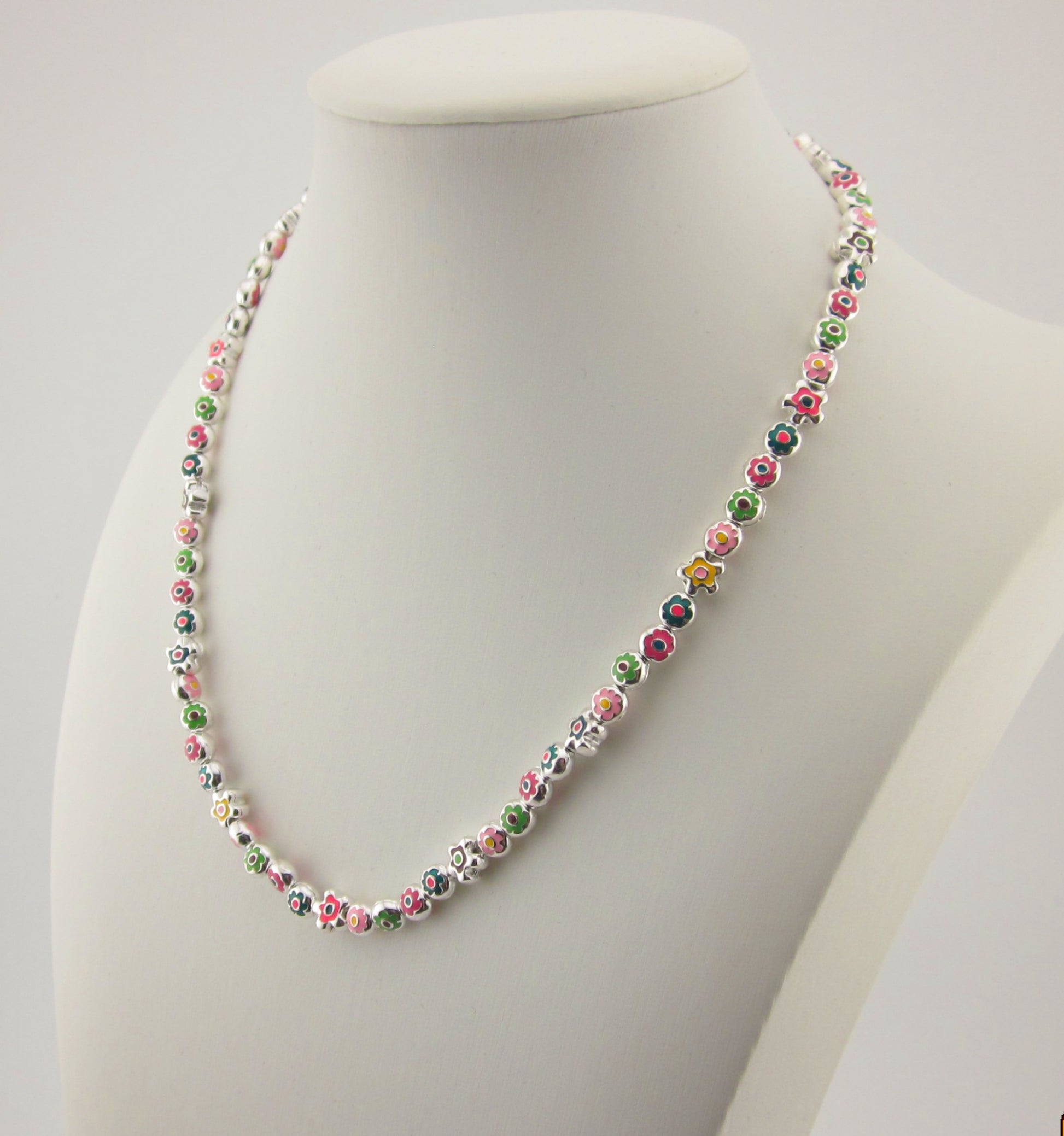 Handcraft Sterling Silver Enamel Flower Necklace: Adjustable Kids Jewelry