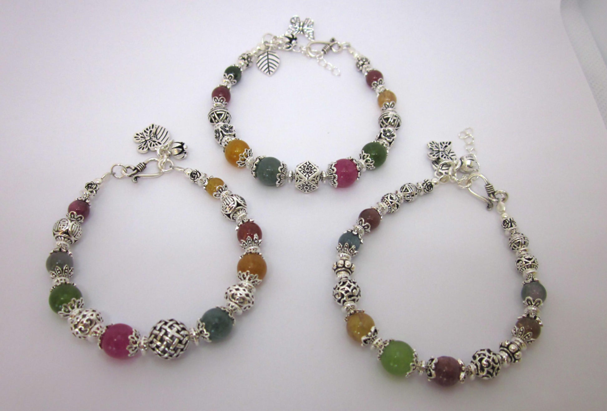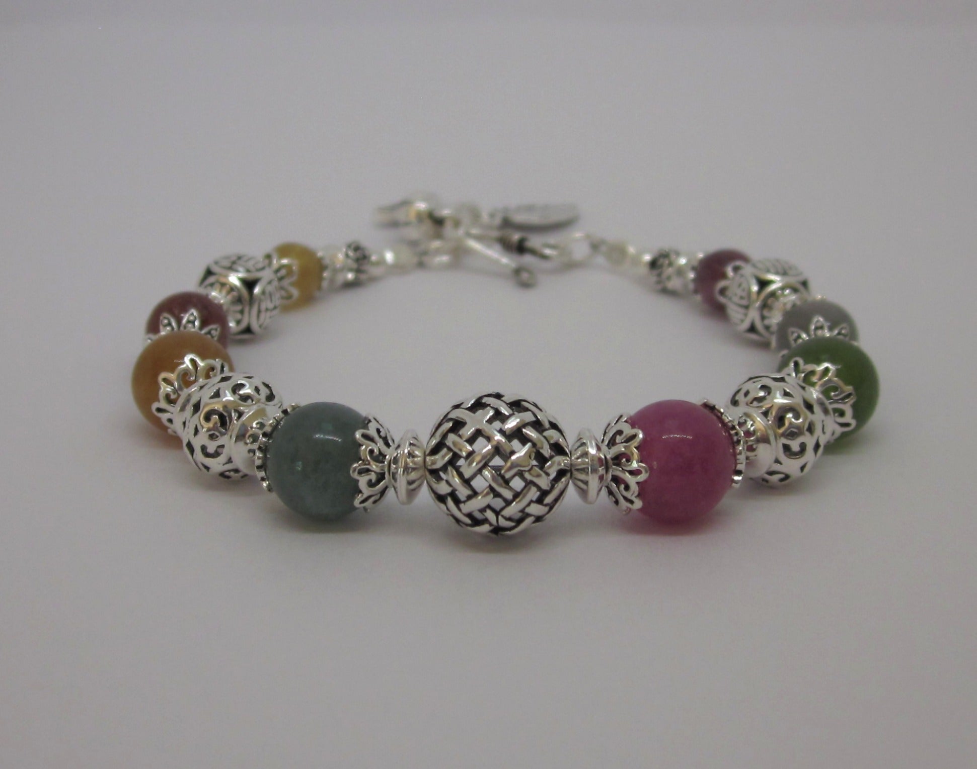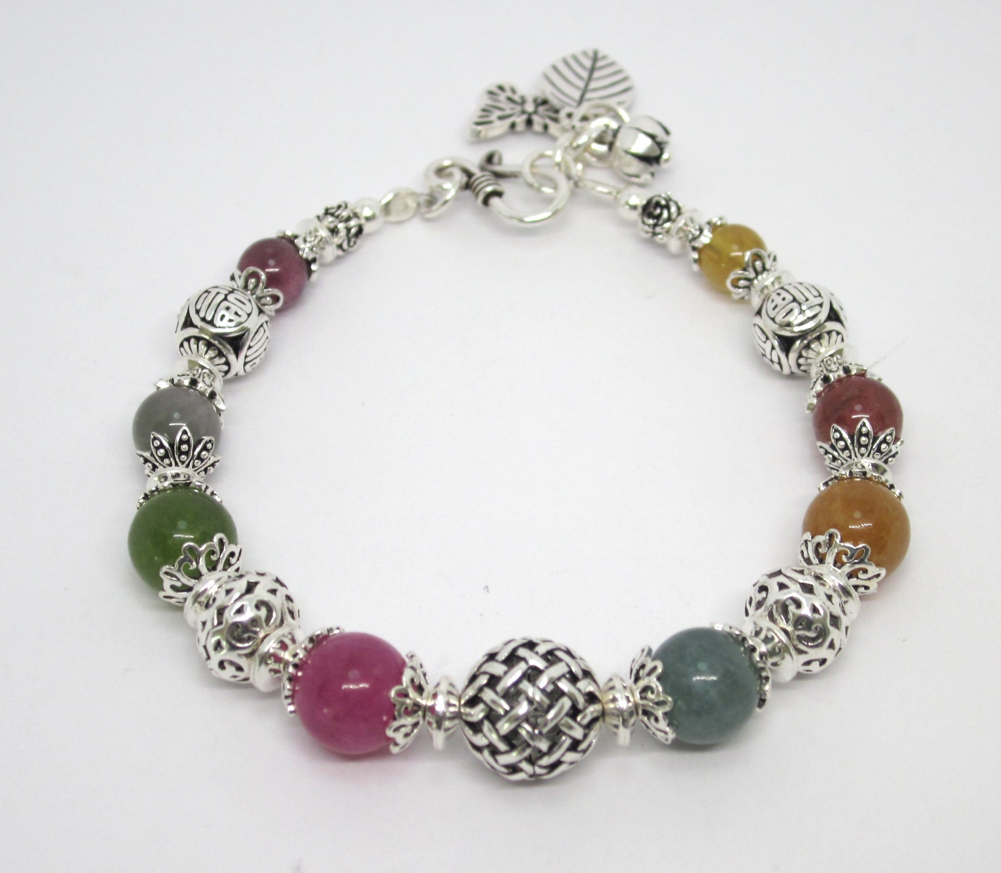 Handmade Multi-Tourmaline Sterling Silver Bracelet: Adjustable Length, Unique Charms