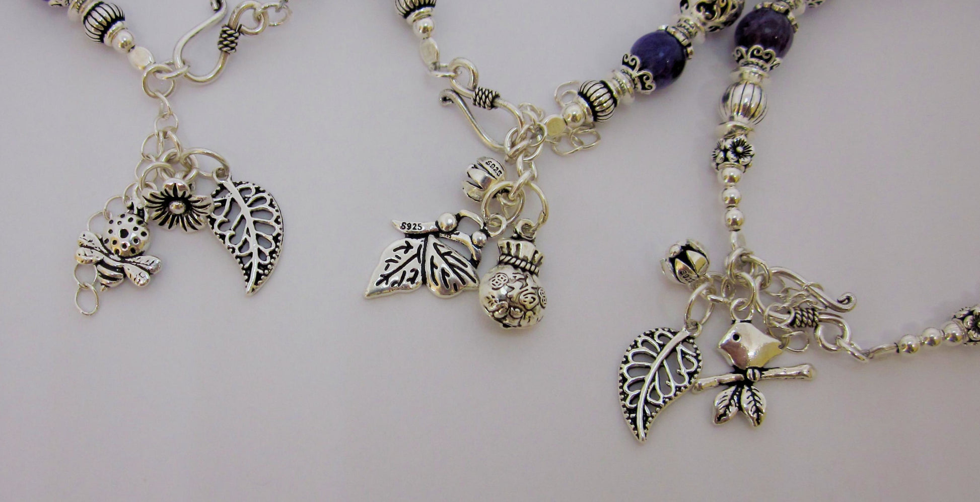 • 925 sterling silver beads and spacers, showcasing floral and geometric patterns for a timeless artisan touch.