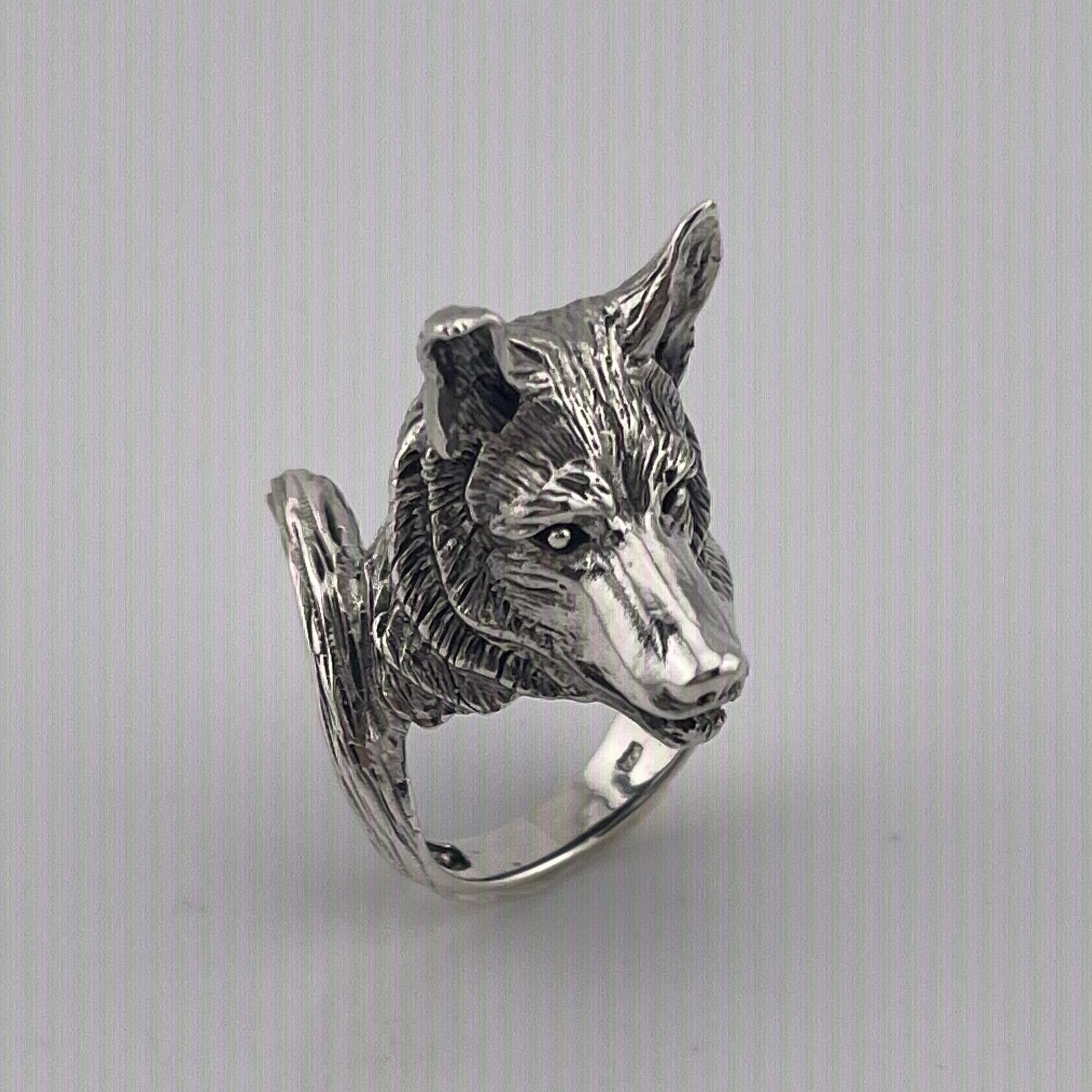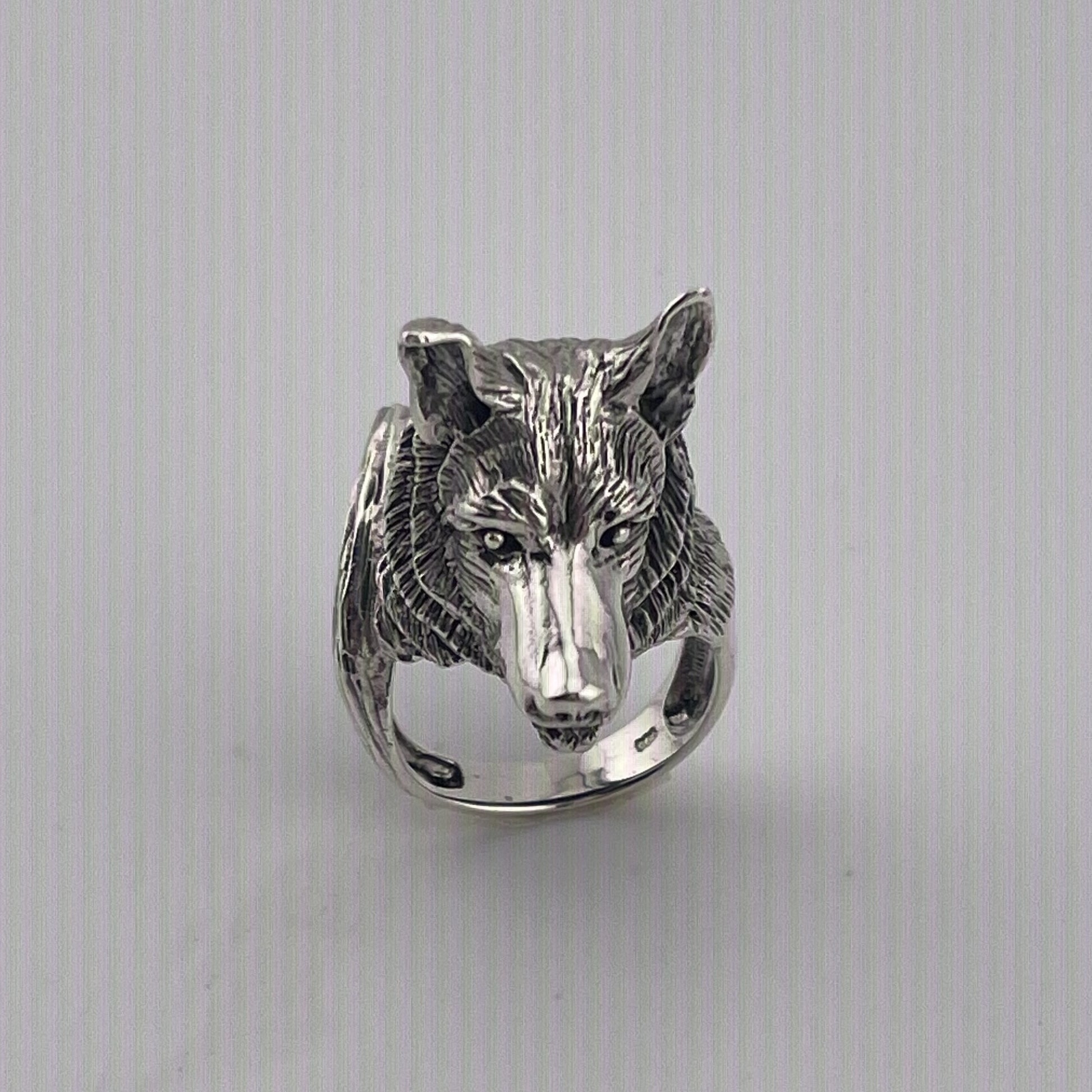 Handmade Sterling Silver Wolf Head Ring – Animal Totem Statement Jewelry, Men's Vintage Ring