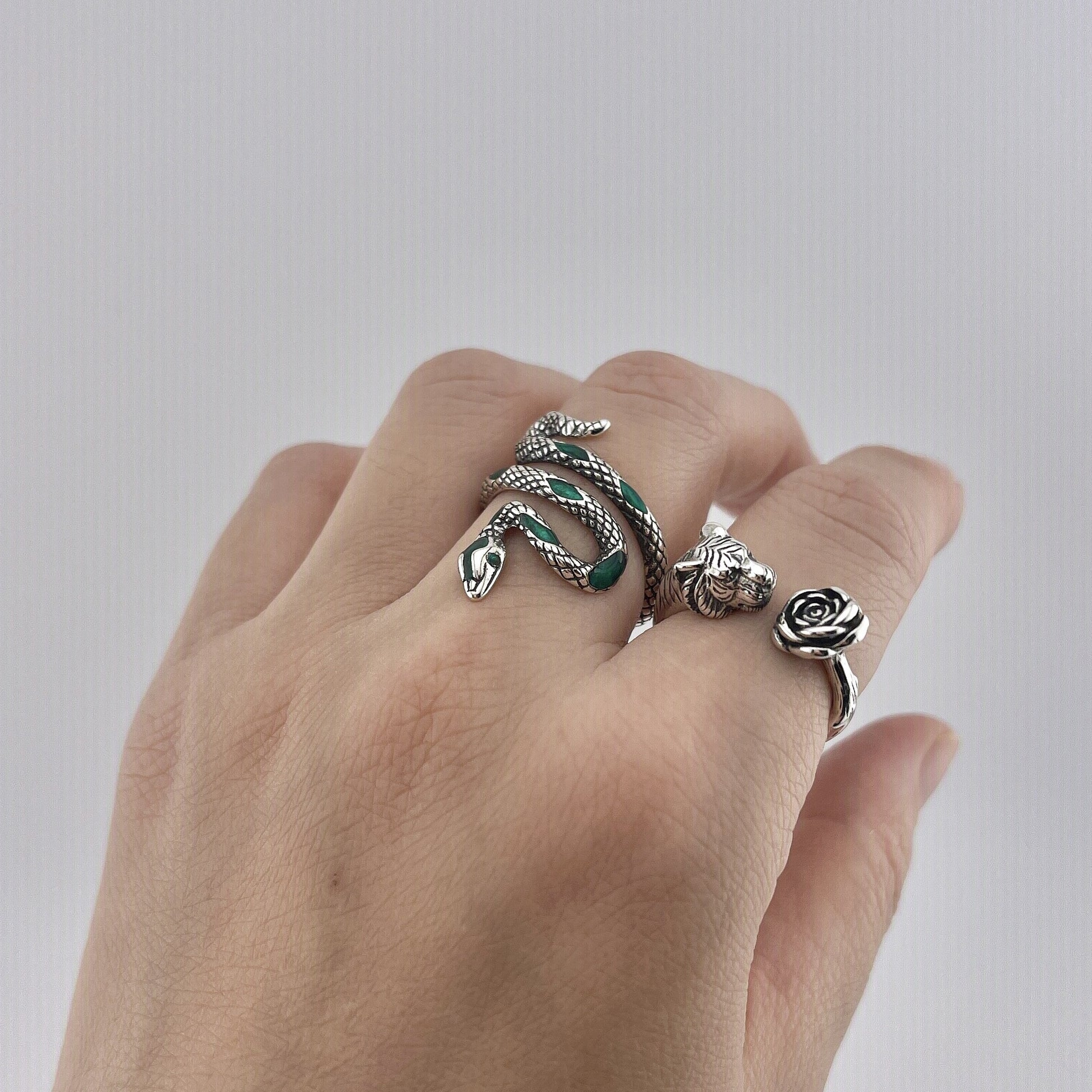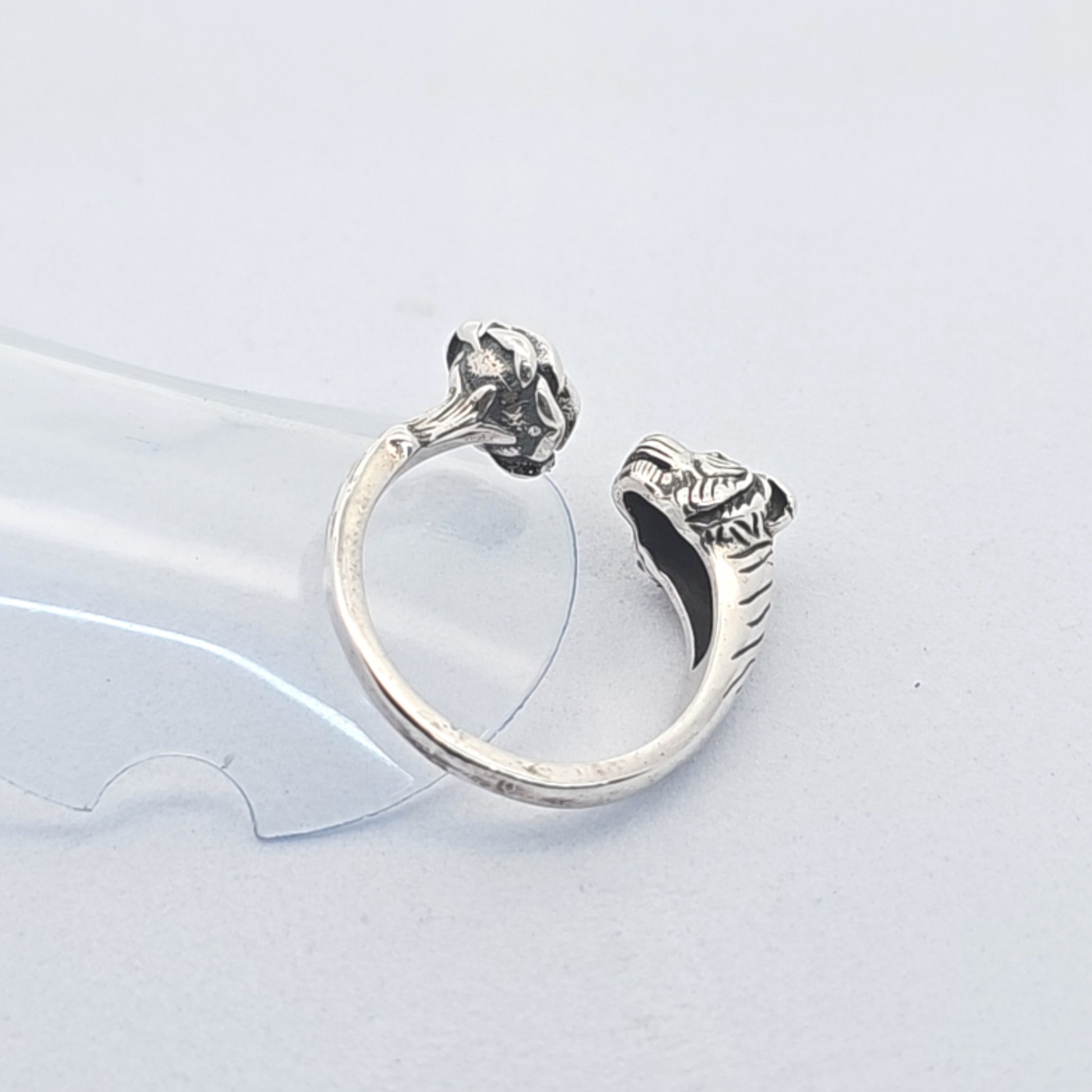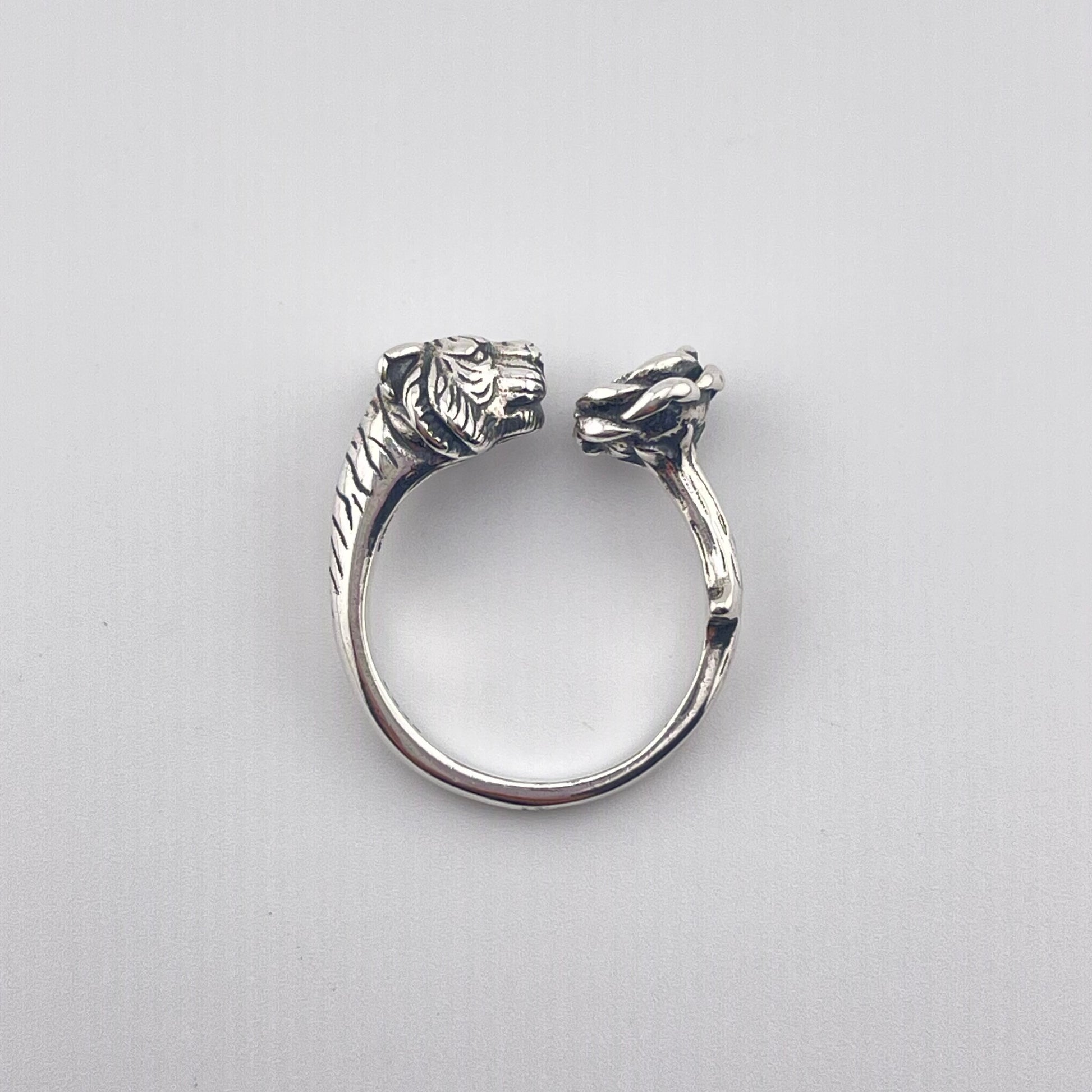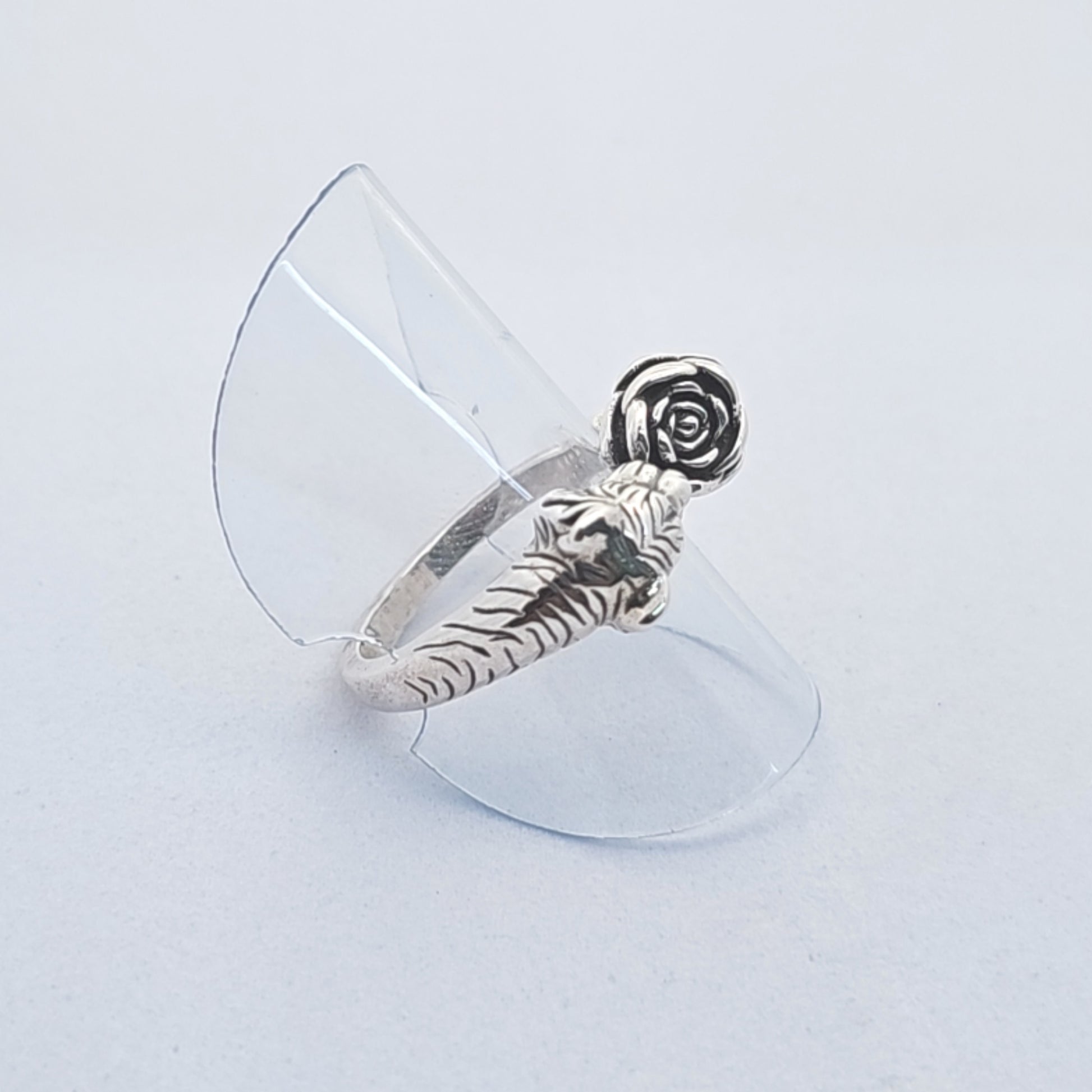 Handmade Vintage Sterling Silver Tiger & Rose Free Size Ring