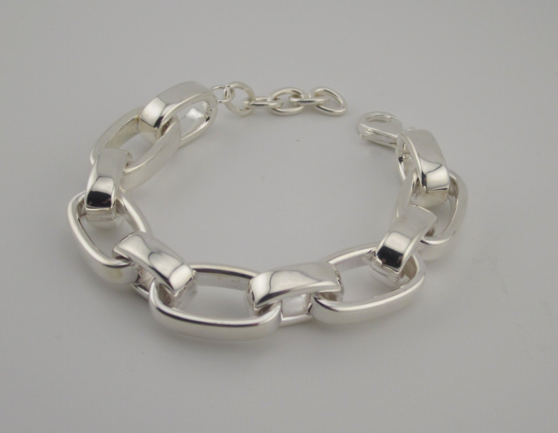 Oversize 925 Sterling Silver Chain Link Bracelet – Modern Statement, Mirror high polished Jewelry