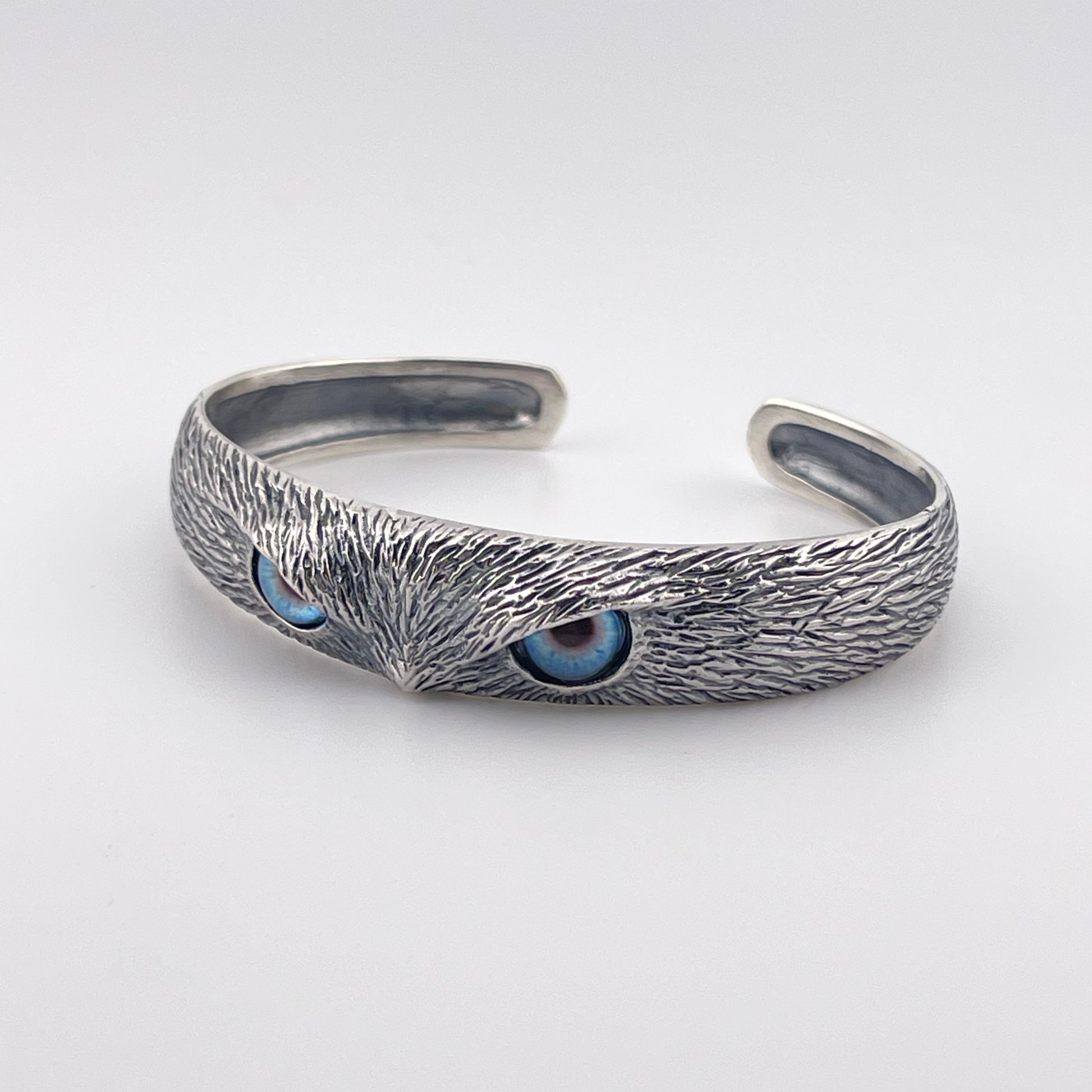 Oxidized Sterling Silver Owl Cuff Bracelet: Handmade Boho Gothic Jewelry