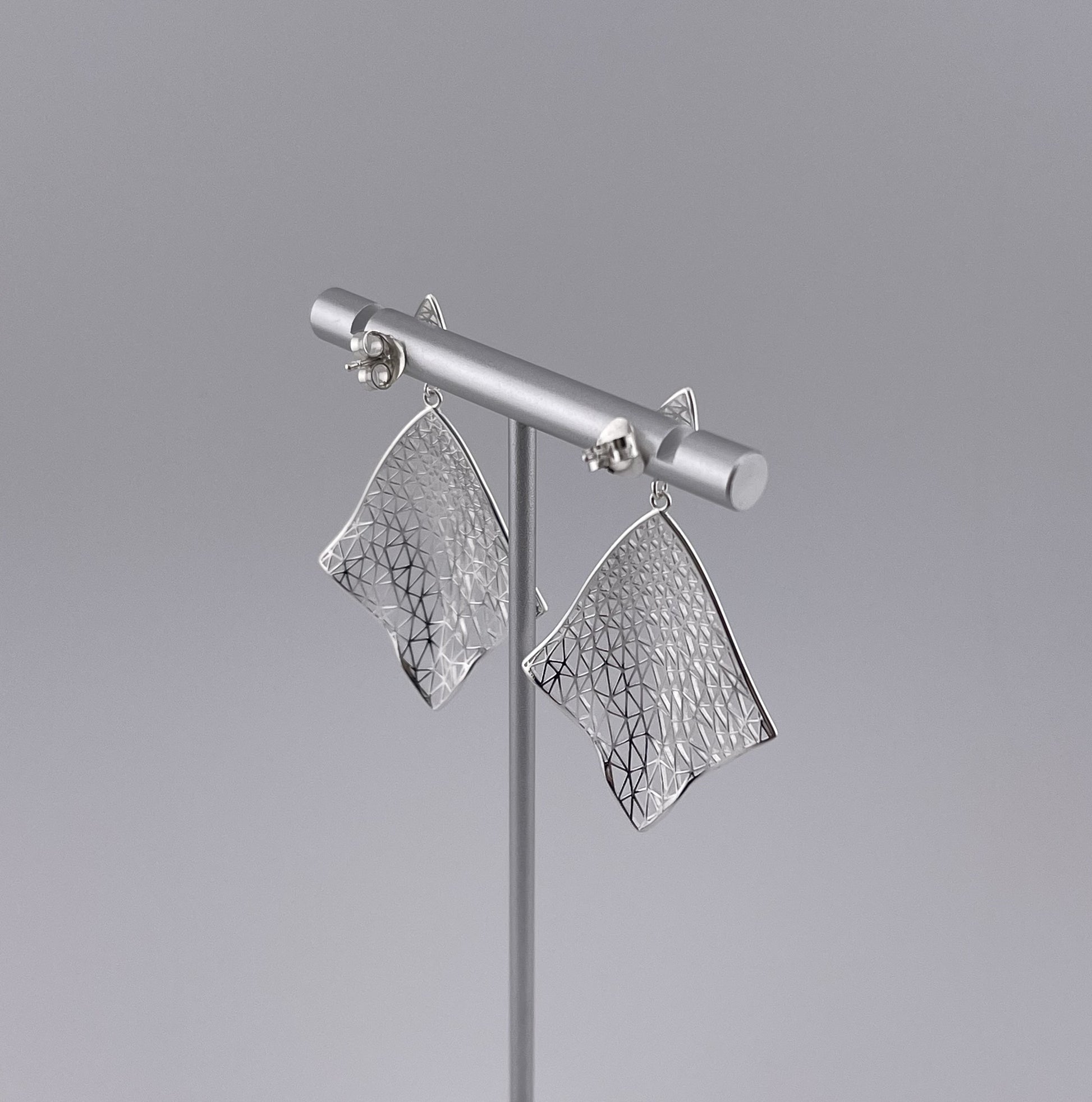Sterling Silver Diamond Drop Earrings: Geometric Cutout Light Weight Modern Jewelry
