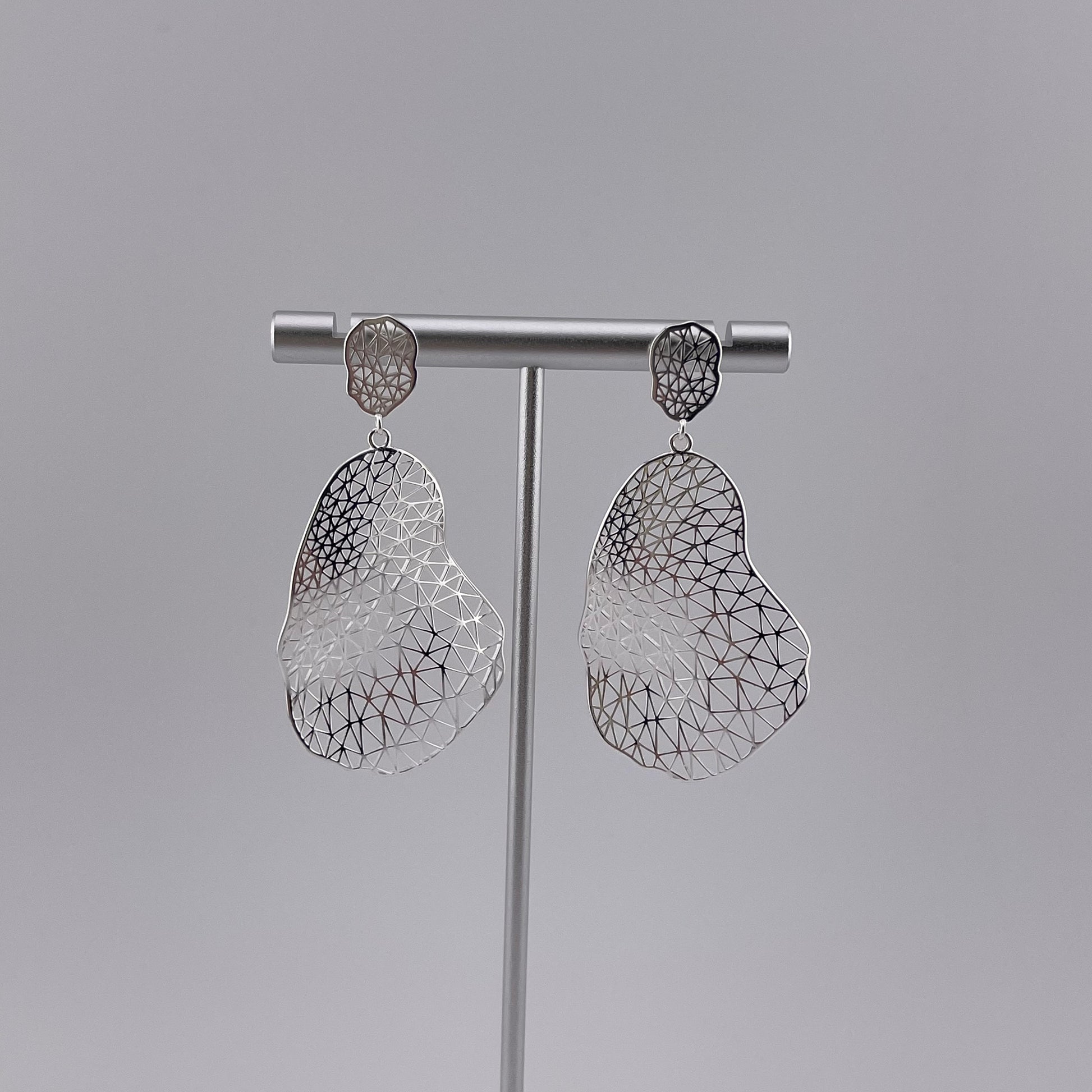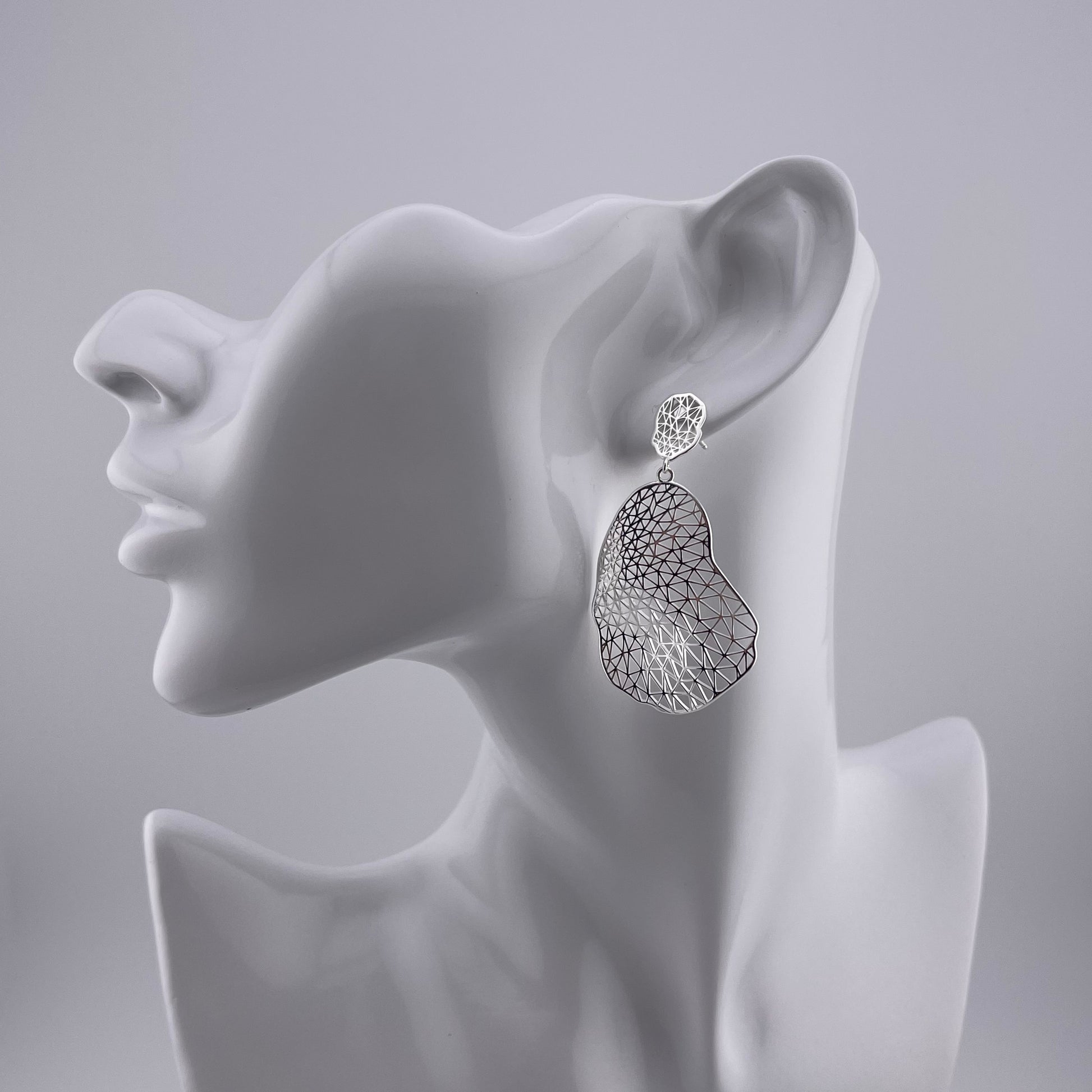 Stand out with these handcrafted 925 sterling silver geometric drop earrings. Featuring an intricate laser-cut hollow design with organic abstract shapes, these lightweight statement earrings are perfect for adding a touch of modern elegance to any outfit.