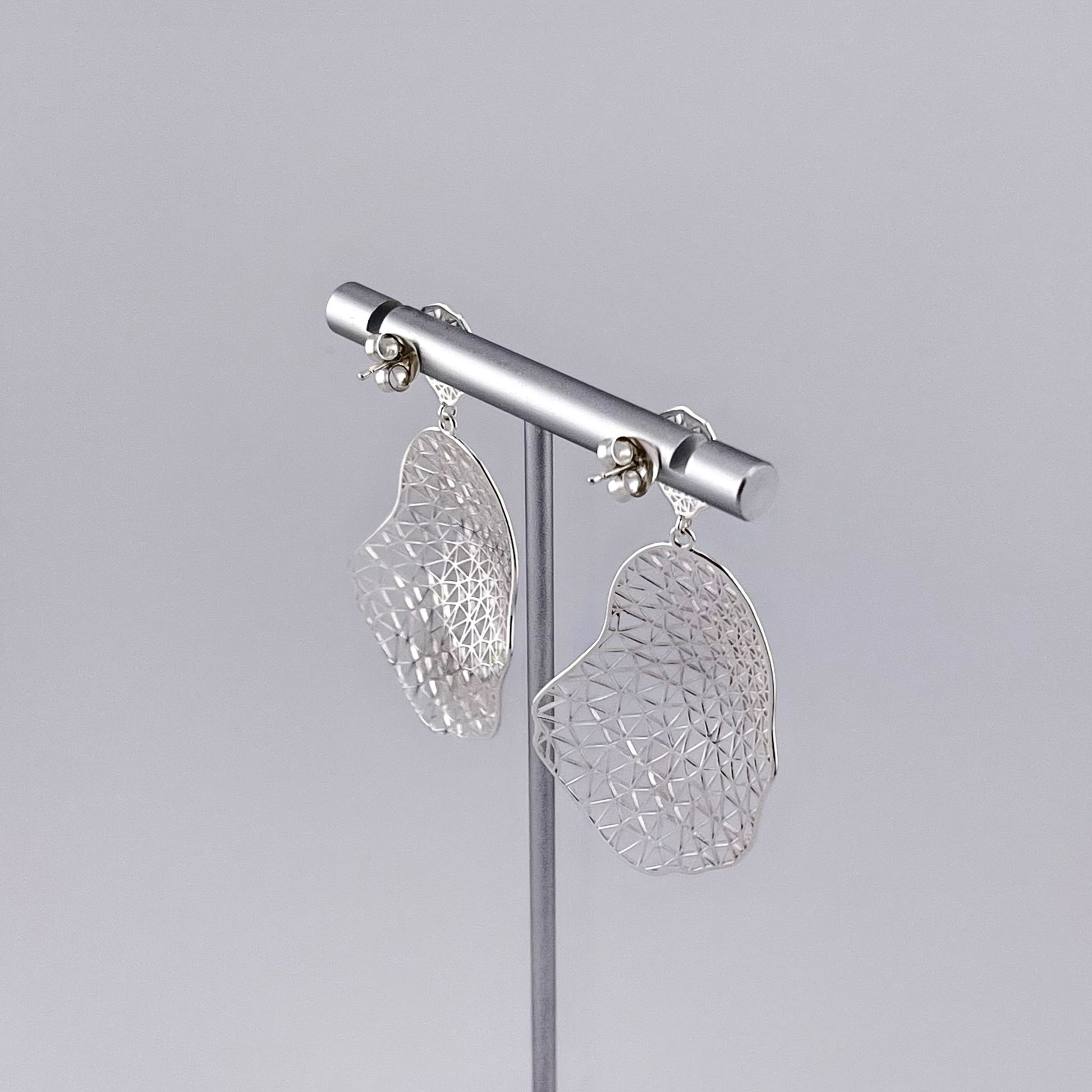 Sterling Silver Geometric Earrings – Modern Statement Drop Earrings, Lightweight Hollow Cut-Out Jewelry, Artistic Design