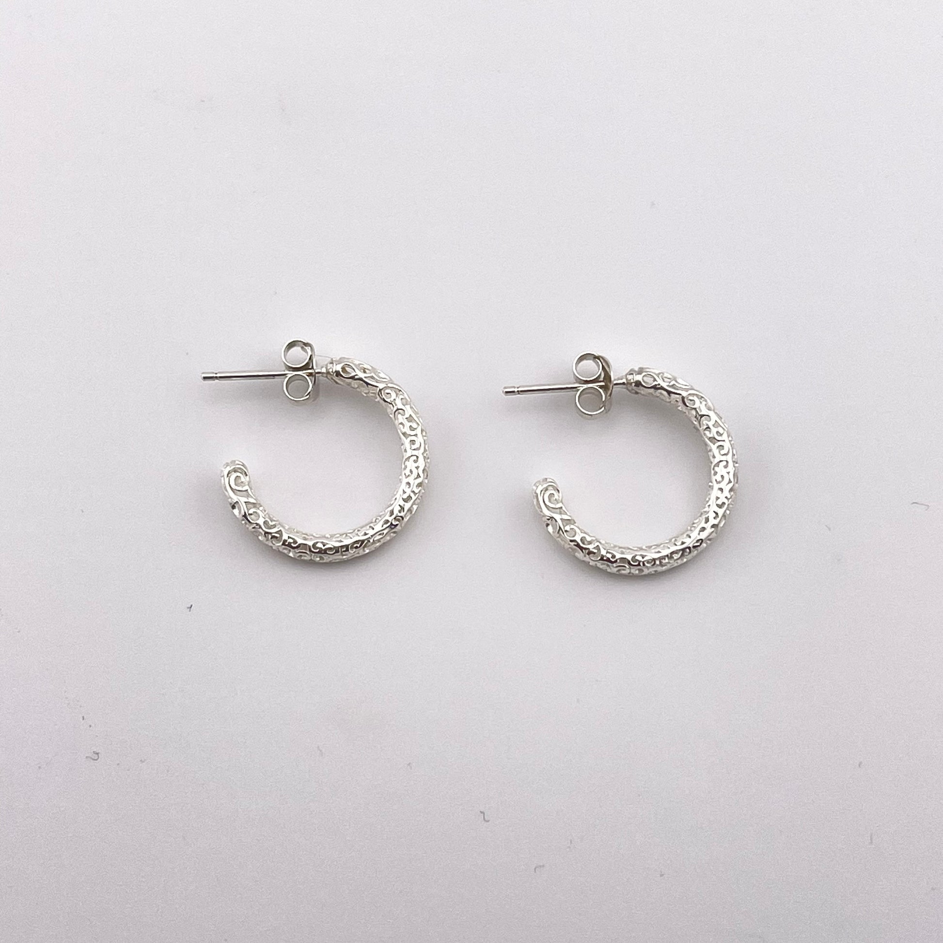 Sterling Silver Hoop Earrings – Hollow Carved Lightweight Artisan Hoops, Handmade Minimalist Silver Jewelry